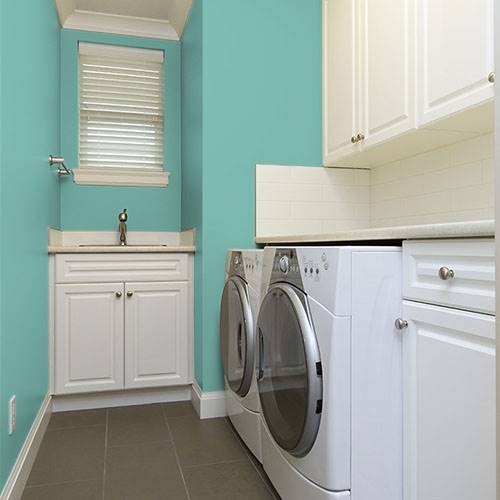 Un jaune lumineux convient bien aux murs principaux d’une cuisine. Accompagnez-le d’appareils en acier inoxydable et un sous-plafond anthracite foncé comme accents.