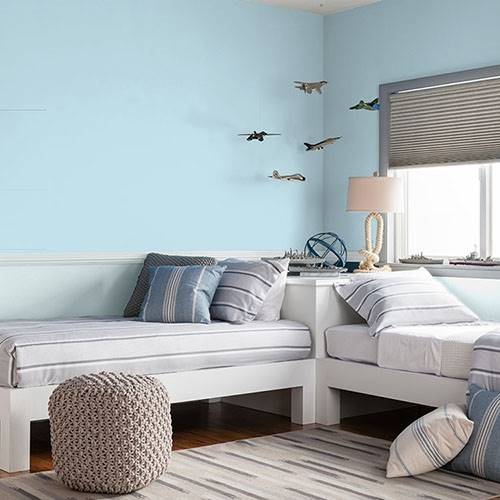 Voici un blanc teinté de jaune très rafraîchissant. Il saccorde bien avec des tons de violet grisé.