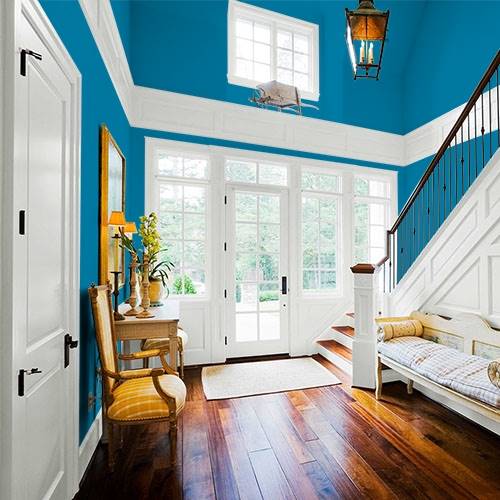 Réveillez la salle à dîner avec ce jaune pâle. Appliquez cette couleur sur la partie inférieure du mur et assortissez-la de moulures blanches.