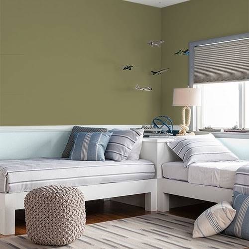 Ce jaune radieux convient parfaitement à un mur accent. Assortissez-le de blanc et d’autres couleurs vives pour créer un espace graphique et joyeux.