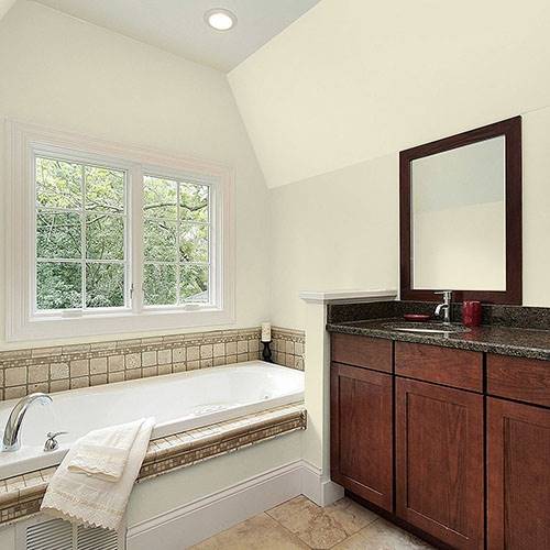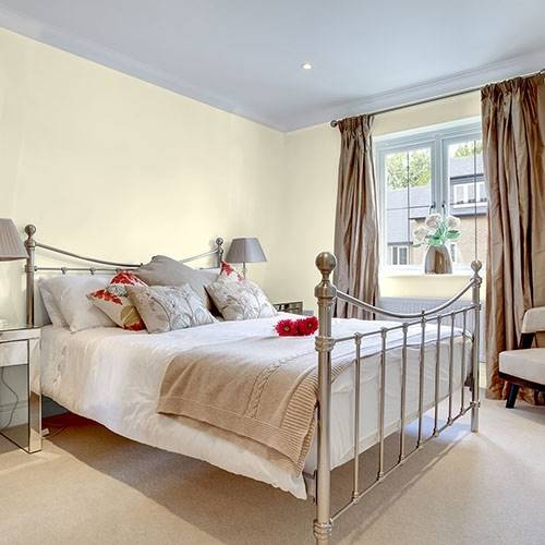 Pour préparer une entrée majestueuse, appliquez-y ce jaune élégant. Utilisez des blancs frappants comme contrastes sur les moulures architecturales.