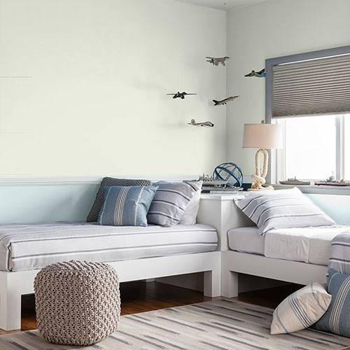 Utilisez ce jaune vif sur une cimaise. Utilisez un jaune plus pâle sur la partie supérieure du mur.