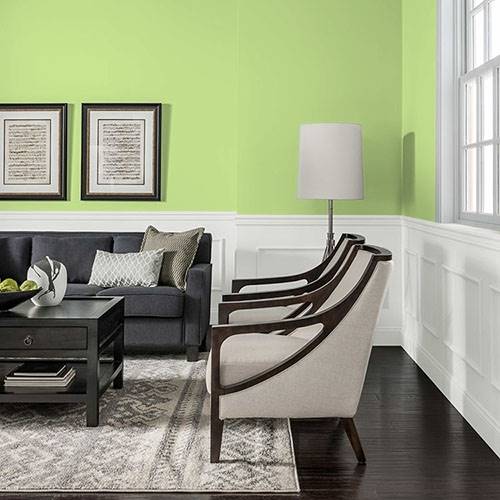 Ce jaune vif est parfait dans une salle de jeux. Il peut être accompagné d’autres couleurs primaires comme un rouge et un bleu.
