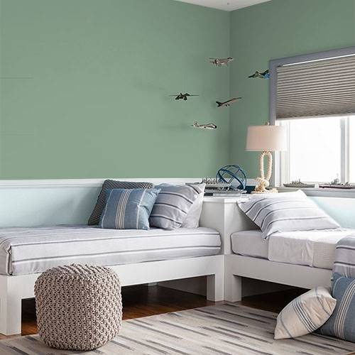 Ce jaune pastel frais conviendra à n’importe quel espace. Utilisez des boiseries blanches et des touches contrastantes de vert pour un look inspiré de la nature.