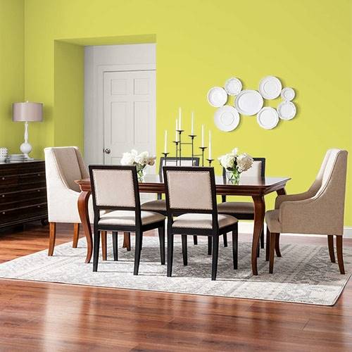 Ce jaune optimiste s’exprime bien dans le salon. Coordonnez avec des accents neutres dans le mobilier.