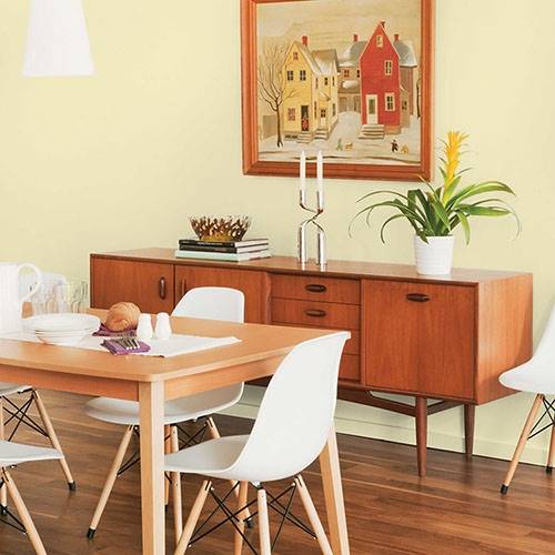 Ce jaune intense convient vraiment bien à un mur accent. Accompagnez-le de jaunes plus pâles et de touches de violet pour compléter le look.