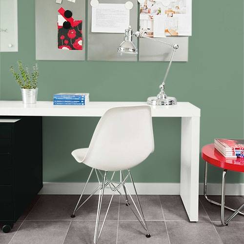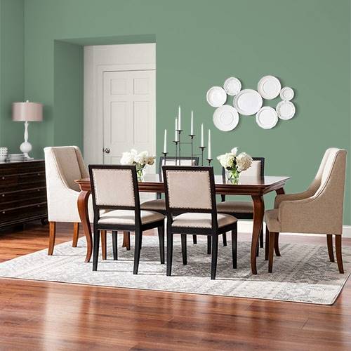 Ce jaune brillant fera un très beau mur accent. Des boiseries blanc cassé sont parfaites dans cet espace.