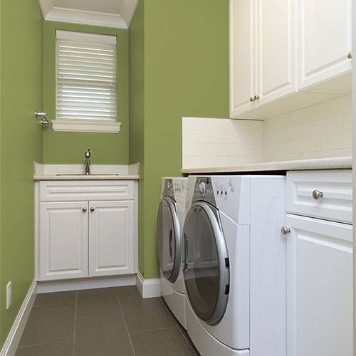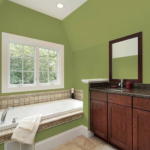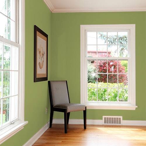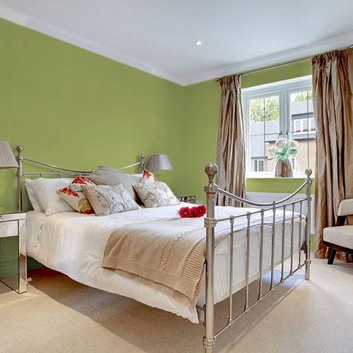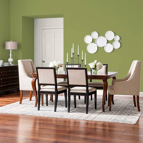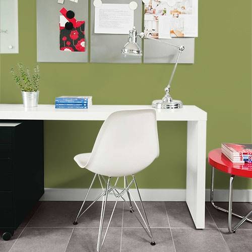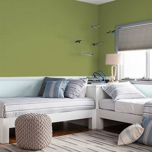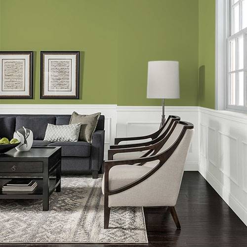 Dans une chambre de bébé transitionnelle, ajoutez ce joli jaune sur un mur accent. Ajoutez un mur anthracite et des boiseries blanches pour compléter le look.