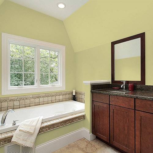 Ce jaune pastel frais conviendra à n’importe quel espace. Utilisez des boiseries blanches et des touches contrastantes de vert pour un look inspiré de la nature.