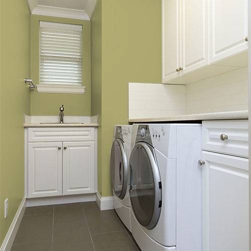 Ce jaune pâle et frais peut être utilisé dans n’importe quelle pièce. Il s’agence bien à des murs anthracite foncé pour donner un effet dramatique.