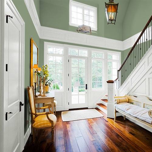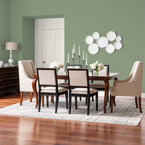 Rappelant un macaron, ce jaune citron convient bien à la salle à dîner. Contrastez avec des meubles foncés d’acajou ou de cerisier.