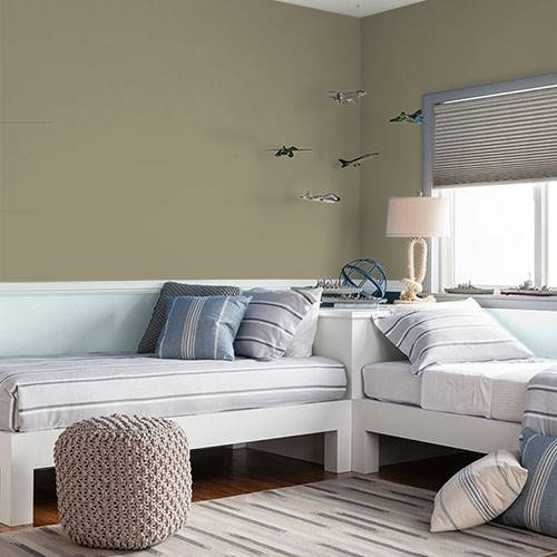Ce jaune dynamique projette beaucoup d’énergie. Utilisez-le sur un mur accent avec un jaune plus pâle pour les autres murs.