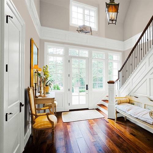 Réveillez la salle à dîner avec ce jaune pâle. Appliquez cette couleur sur la partie inférieure du mur et assortissez-la de moulures blanches.