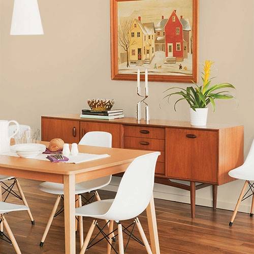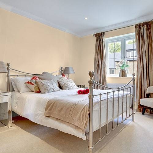 Ce doux jaune est élégant sur les murs principaux. Ajoutez des meubles brun chocolat et des jetés de couleur neutre comme accents.