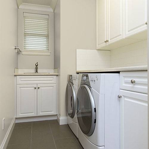 Dans une chambre de bébé transitionnelle, ajoutez ce joli jaune sur un mur accent. Ajoutez un mur anthracite et des boiseries blanches pour compléter le look.