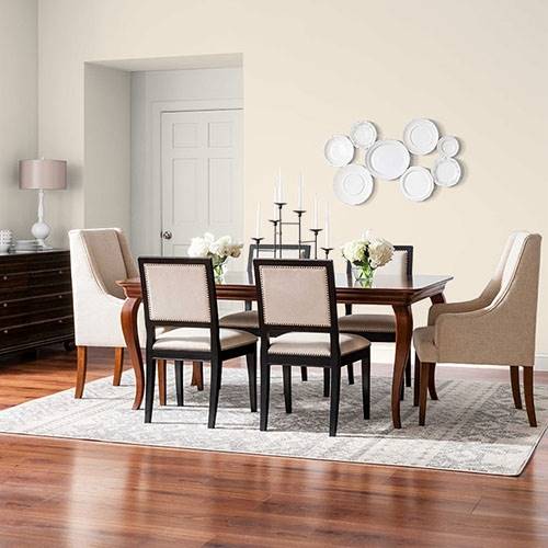 Essayez un jaune vigoureux dans la salle d’exercice. Utilisez un gris argent comme contraste.