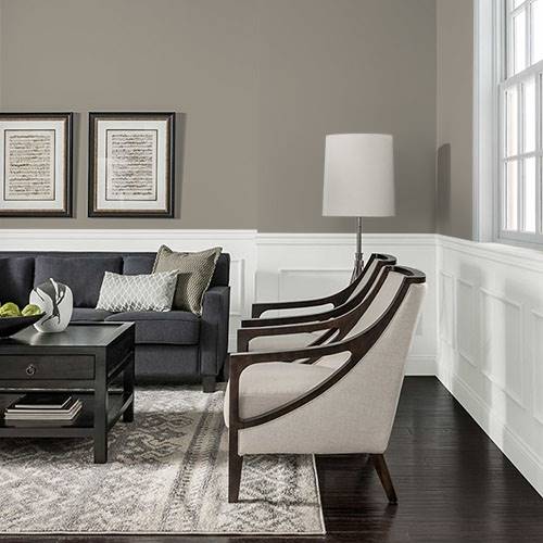 Ce doux doré élégant est très beau dans la salle à dîner. Utilisez du blanc sur les boiseries et les plinthes, de même que pour les meubles.