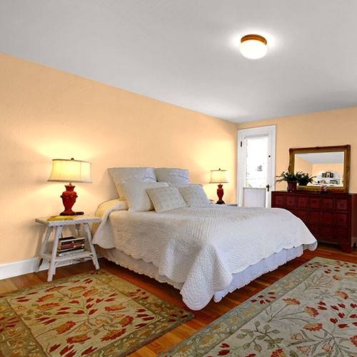 Ce jaune dynamique projette beaucoup d’énergie. Utilisez-le sur un mur accent avec un jaune plus pâle pour les autres murs.