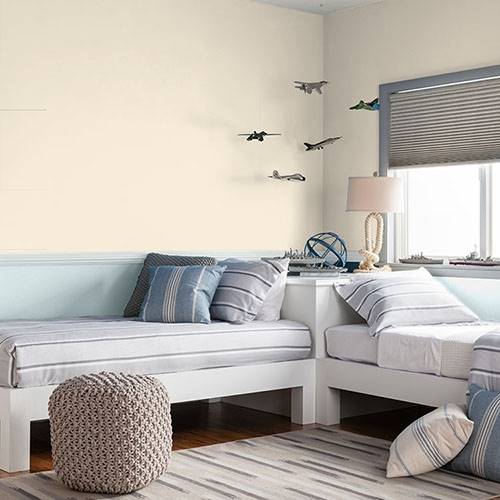 Ce jaune dynamique projette beaucoup d’énergie. Utilisez-le sur un mur accent avec un jaune plus pâle pour les autres murs.