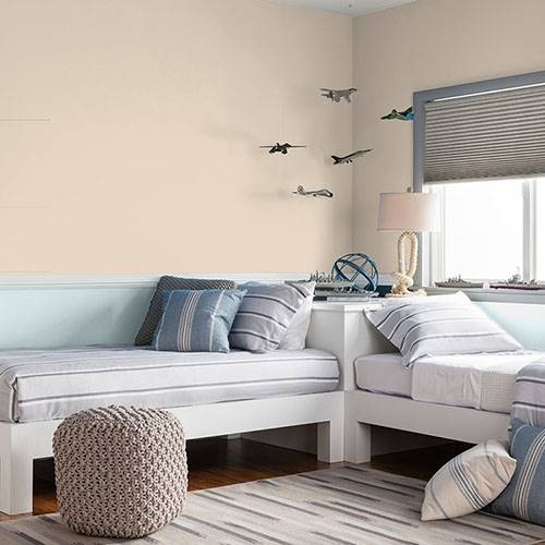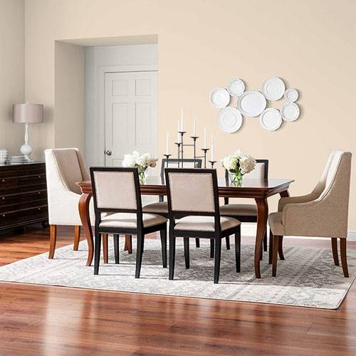 Ce jaune pastel frais conviendra à n’importe quel espace. Utilisez des boiseries blanches et des touches contrastantes de vert pour un look inspiré de la nature.