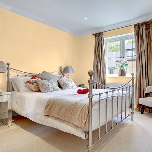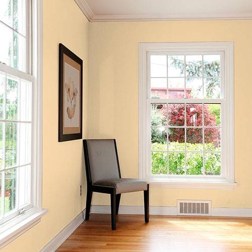 Ce jaune élégant est magnifique dans une cuisine. Ajoutez des boiseries blanches et utilisez des touches de vert sauge pour doter la pièce d’une essence inspirée de la nature.