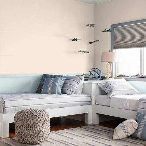 Parfait pour la chambre de bébé, ce doux jaune neutre est réconfortant. Des accents d’anthracite foncé et des touches de vert menthe rendront l’espace invitant.