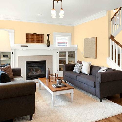 Essayez un jaune vigoureux dans la salle d’exercice. Utilisez un gris argent comme contraste.