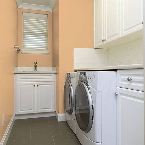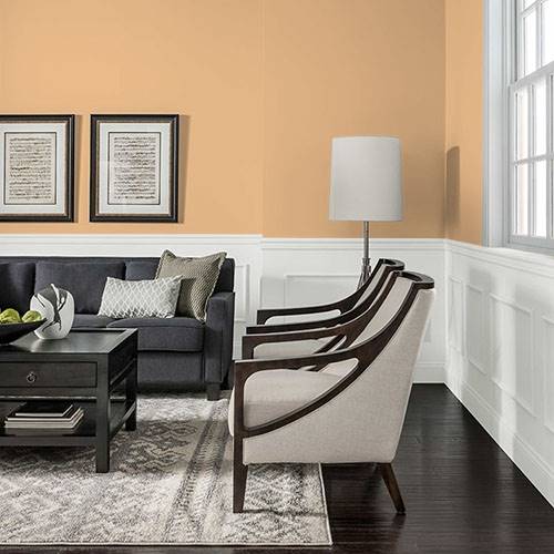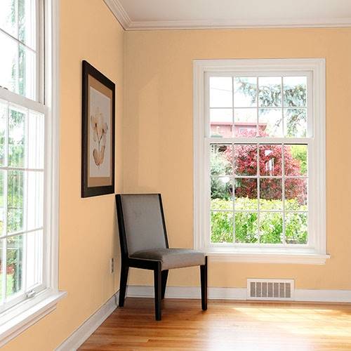 Pour préparer une entrée majestueuse, appliquez-y ce jaune élégant. Utilisez des blancs frappants comme contrastes sur les moulures architecturales.