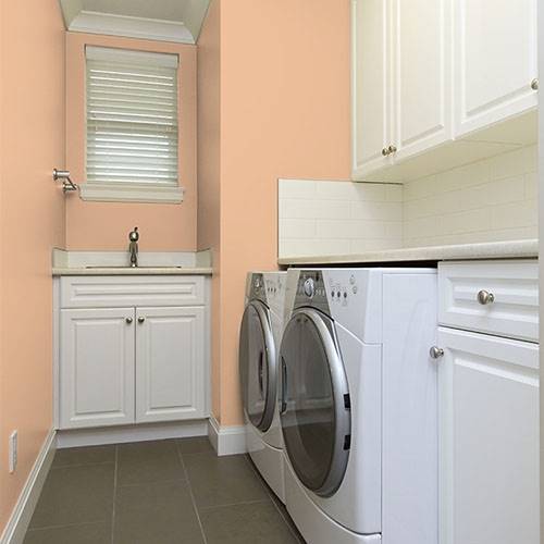 Essayez un jaune vigoureux dans la salle d’exercice. Utilisez un gris argent comme contraste.