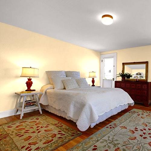 Pour préparer une entrée majestueuse, appliquez-y ce jaune élégant. Utilisez des blancs frappants comme contrastes sur les moulures architecturales.