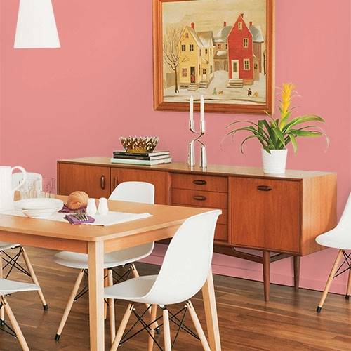Un jaune lumineux convient bien aux murs principaux d’une cuisine. Accompagnez-le d’appareils en acier inoxydable et un sous-plafond anthracite foncé comme accents.
