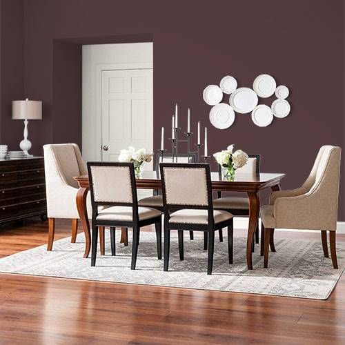 Un doré complexe et sophistiqué peut inspirer un décor à l’Italienne. Ajoutez un jaune pâle sur les boiseries et des accents de prune foncé pour plus de dimension.