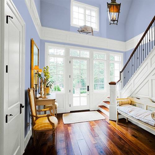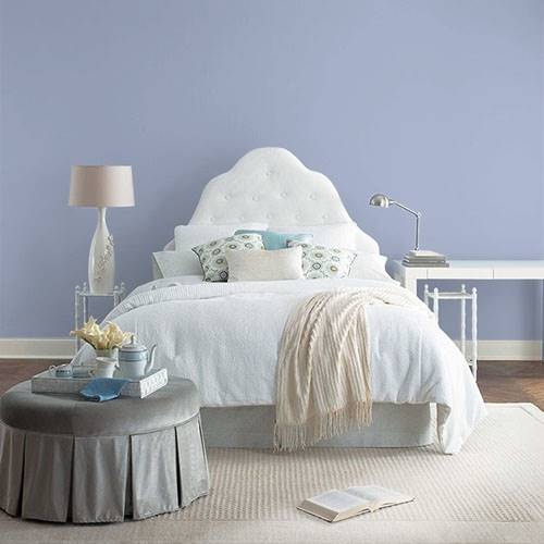 Voici un blanc teinté de jaune très rafraîchissant. Il s’accorde bien avec des tons de violet grisé.