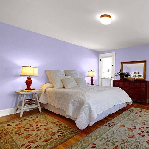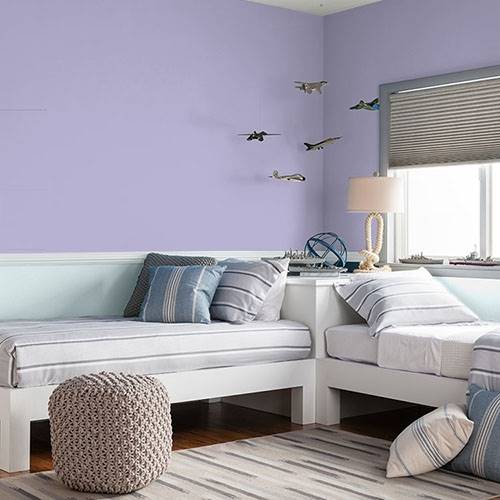 Un jaune radieux réchauffe n’importe quel intérieur. Accompagnez-le de violet grisé pour harmoniser l’espace.