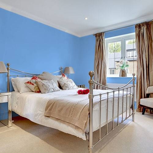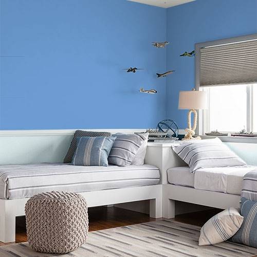 Ce jaune intense convient vraiment bien à un mur accent. Accompagnez-le de jaunes plus pâles et de touches de violet pour compléter le look.