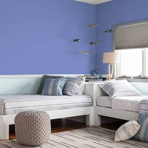 Utilisez ce jaune vif sur une cimaise. Utilisez un jaune plus pâle sur la partie supérieure du mur.