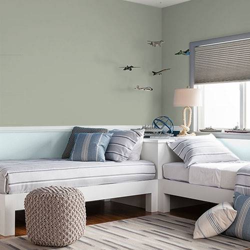 Ce jaune radieux convient parfaitement à un mur accent. Assortissez-le de blanc et d’autres couleurs vives pour créer un espace graphique et joyeux.
