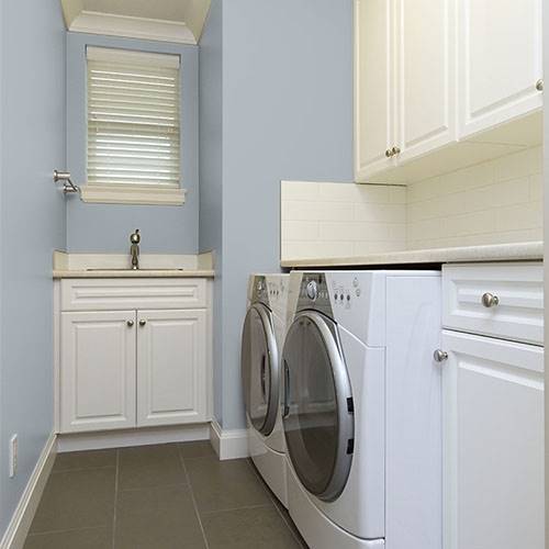 Une teinte jaune enjouée crée un mur invitant dans la cuisine. Agencez-la avec des boiseries blanches pour obtenir un effet épuré.