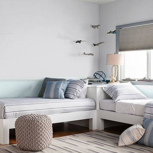 Voici un blanc teinté de jaune très rafraîchissant. Il s’accorde bien avec des tons de violet grisé.