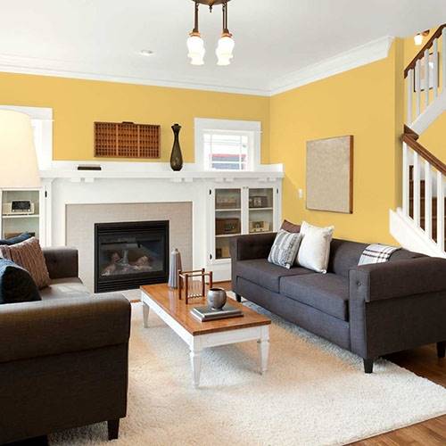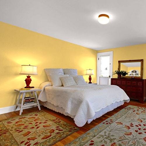 Ce jaune radieux convient parfaitement à un mur accent. Assortissez-le de blanc et d’autres couleurs vives pour créer un espace graphique et joyeux.