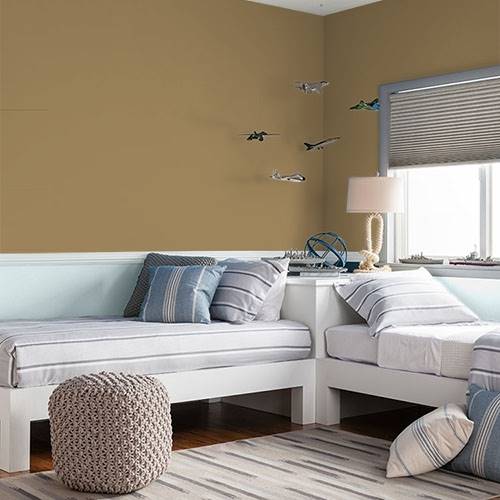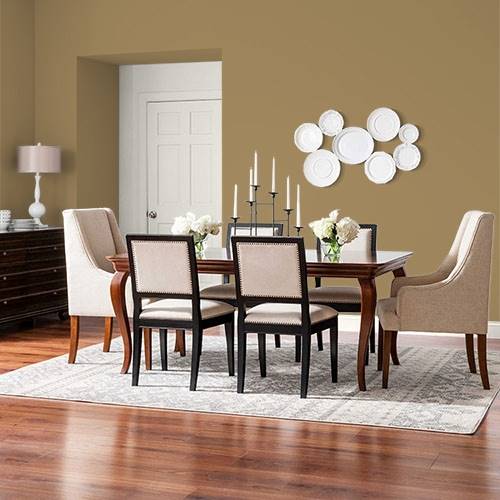 Ce jaune électrique est parfait pour la salle d’exercice. Ajoutez de l’ambiance à votre routine en coordonnant avec des violets grisés pour équilibrer l’espace.