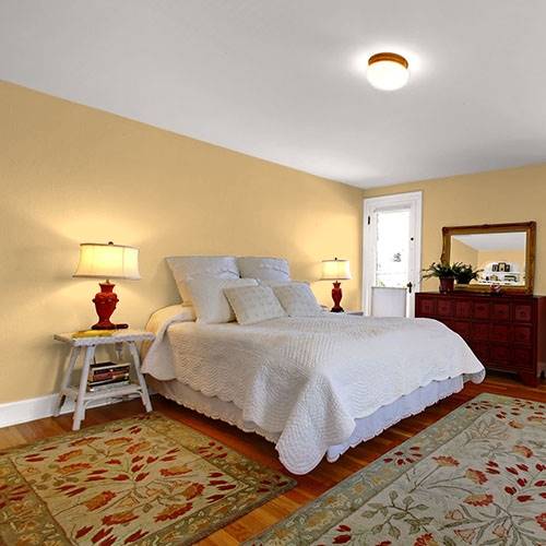 Utilisez ce jaune amusant et dynamique dans une pièce tout usage afin de lui donner un regain d’énergie. Contrastez avec des teintes de jaune crème pâle pour obtenir un look complémentaire.