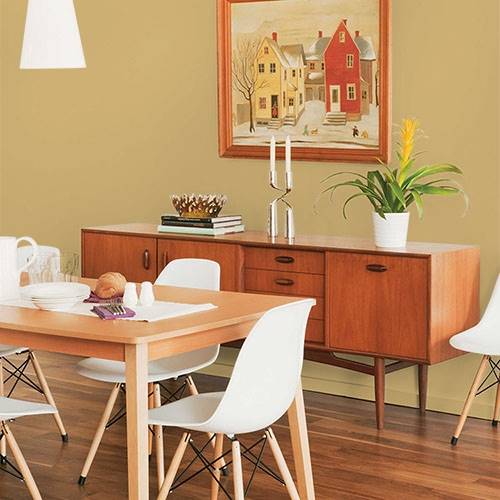Une teinte jaune enjouée crée un mur invitant dans la cuisine. Agencez-la avec des boiseries blanches pour obtenir un effet épuré.