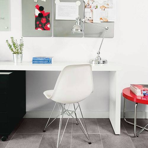 Essayez un jaune vigoureux dans la salle d’exercice. Utilisez un gris argent comme contraste.