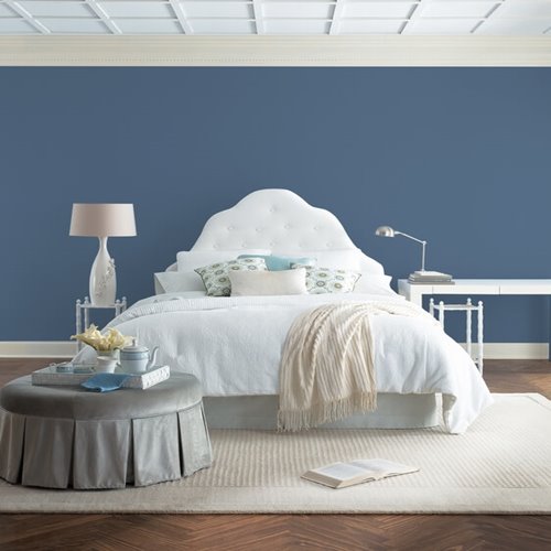 Para el dormitorio de un adulto, es posible que un color de pintura maduro y relajante como Blue Fjord le resulte interesante. Este color es un azul profundo tranquilo y silencioso que al mismo tiempo ofrece un toque de color. La profundidad de este color hace que la habitación sea acogedora y reconfortante, perfecta para acurrucarse en la cama durante los fríos meses del invierno. Puede decorar las paredes con detalles sutiles como espejos y fotografías enmarcadas. Un cobertor azul oscuro completa la decoración con este color de pintura azul.Al buscar ideas para dormitorios pequeños, puede ser fácil quedar atrapado en el espectro de miles de colores de pintura. Trate de comenzar por un color base y avance desde allí. ¿Quiere un gris neutro? ¿Un azul refrescante? ¿Un rojo vibrante? Una vez que haya elegido el color y el tono base, puede continuar. Las ideas para dormitorios pequeños en línea abundan, pero solo uno de estos colores coincidirá con la imagen perfecta que tiene en mente.