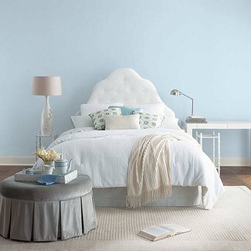 For a casual living space, use this light and airy blue. Coordinate with denim inspired blues for accents.
