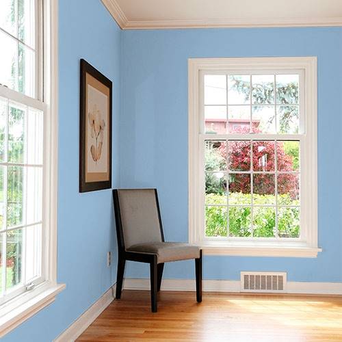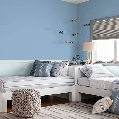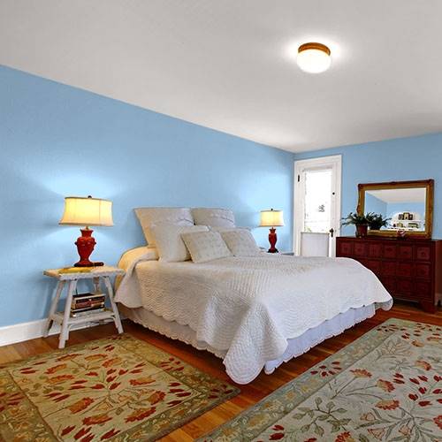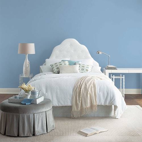 This relaxing and calming blue is soothing for any space of your choice. Accent this hue with white furniture selections.