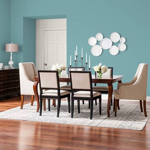 Want a spa appeal in your home? Add this beautiful soothing green into your space with added touches of light violet tones.