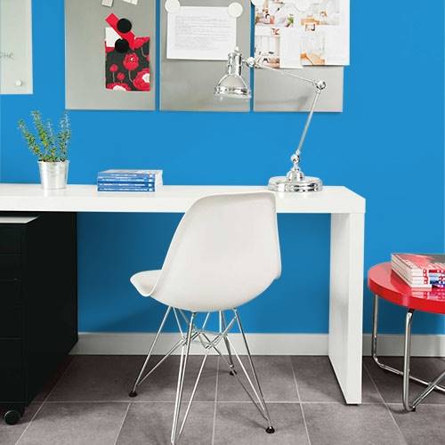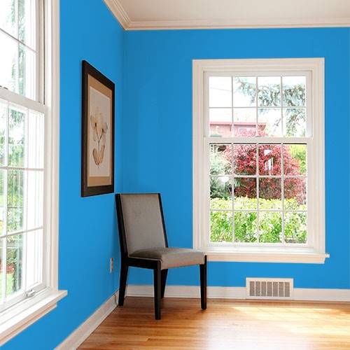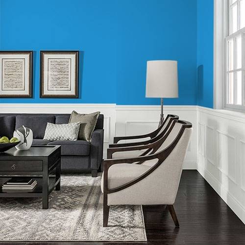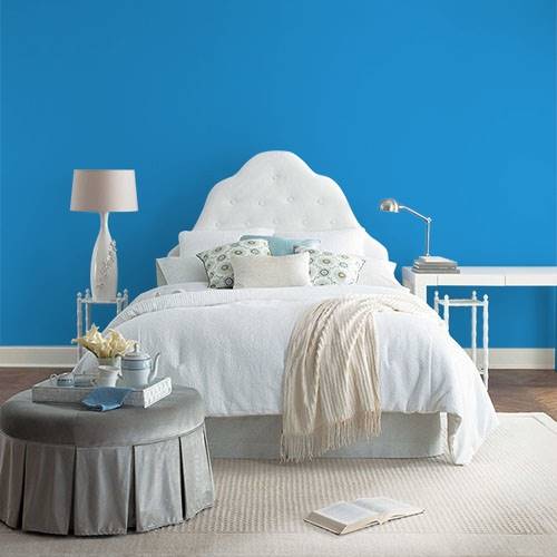 This electric blue is perfect for an exercise room or dance inspired area. Trim in white and coordinate lighter shades of blues.