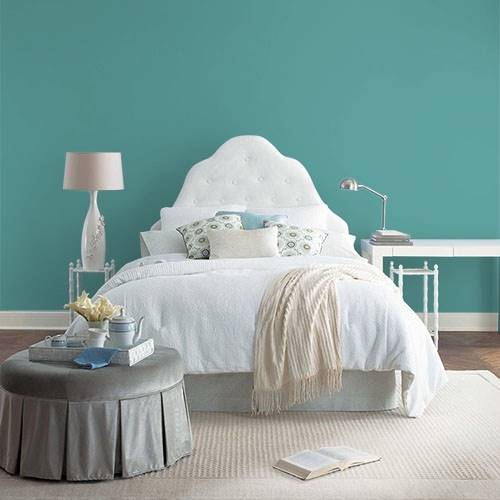 This blue green is perfect for an English Garden backdrop. Serene and beautiful this shade can be trimmed in white with colorful accessories as accents.
